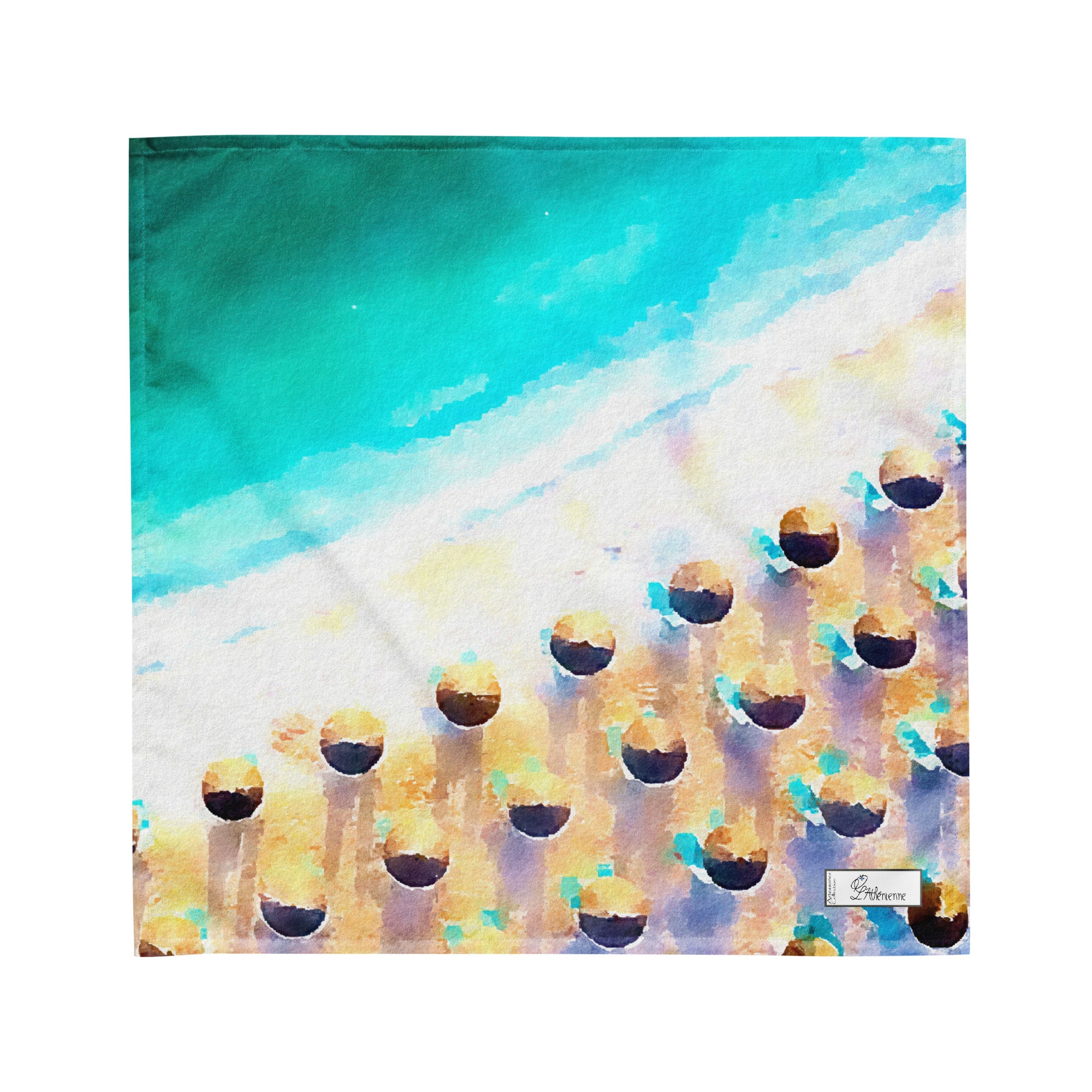 Inspired by drone views of Greece’s most iconic beaches, the bandana blends vivid blues, coastal contours, and sunlit serenity into a lightweight, stylish piece that celebrates the magic of the Mediterranean. Whether you're heading to the beach, the city, or a summer festival, this wearable artwork brings island elegance wherever you go.