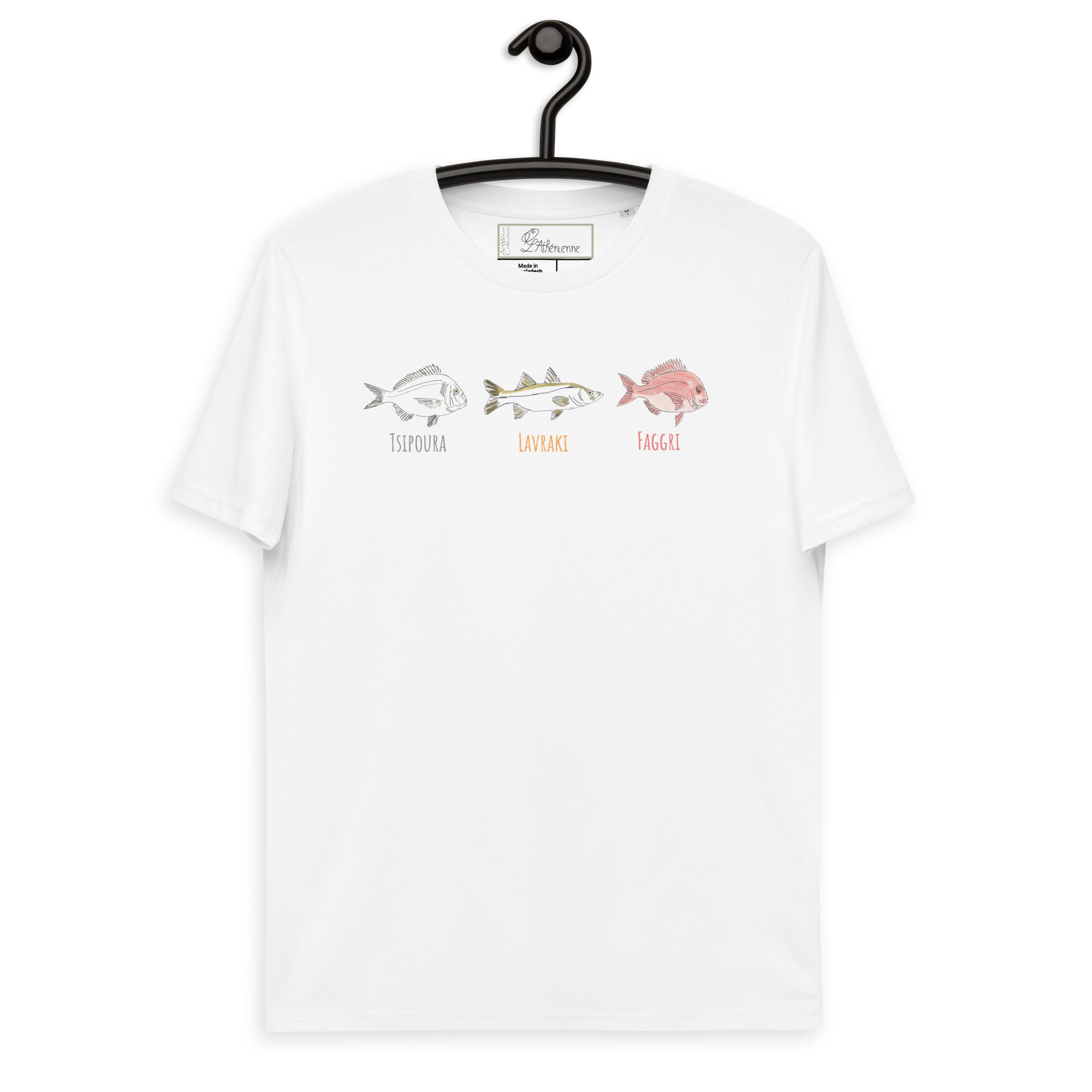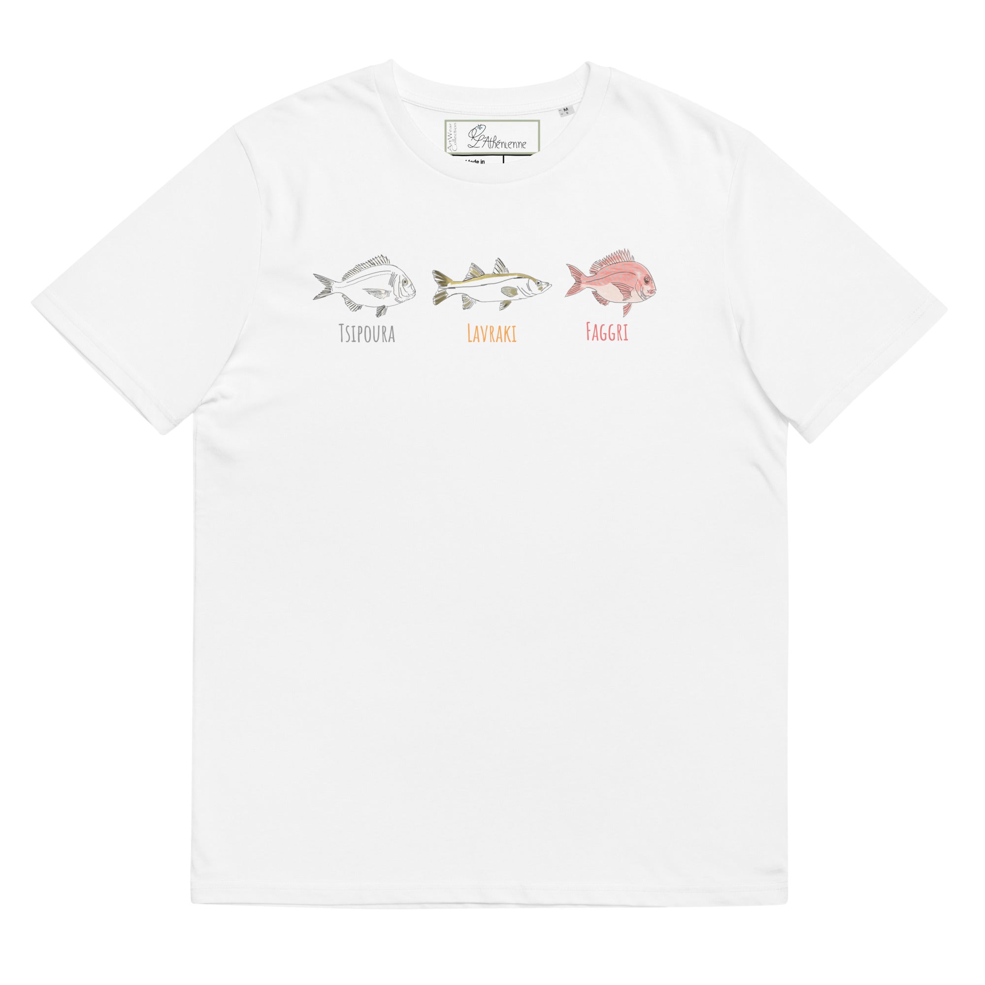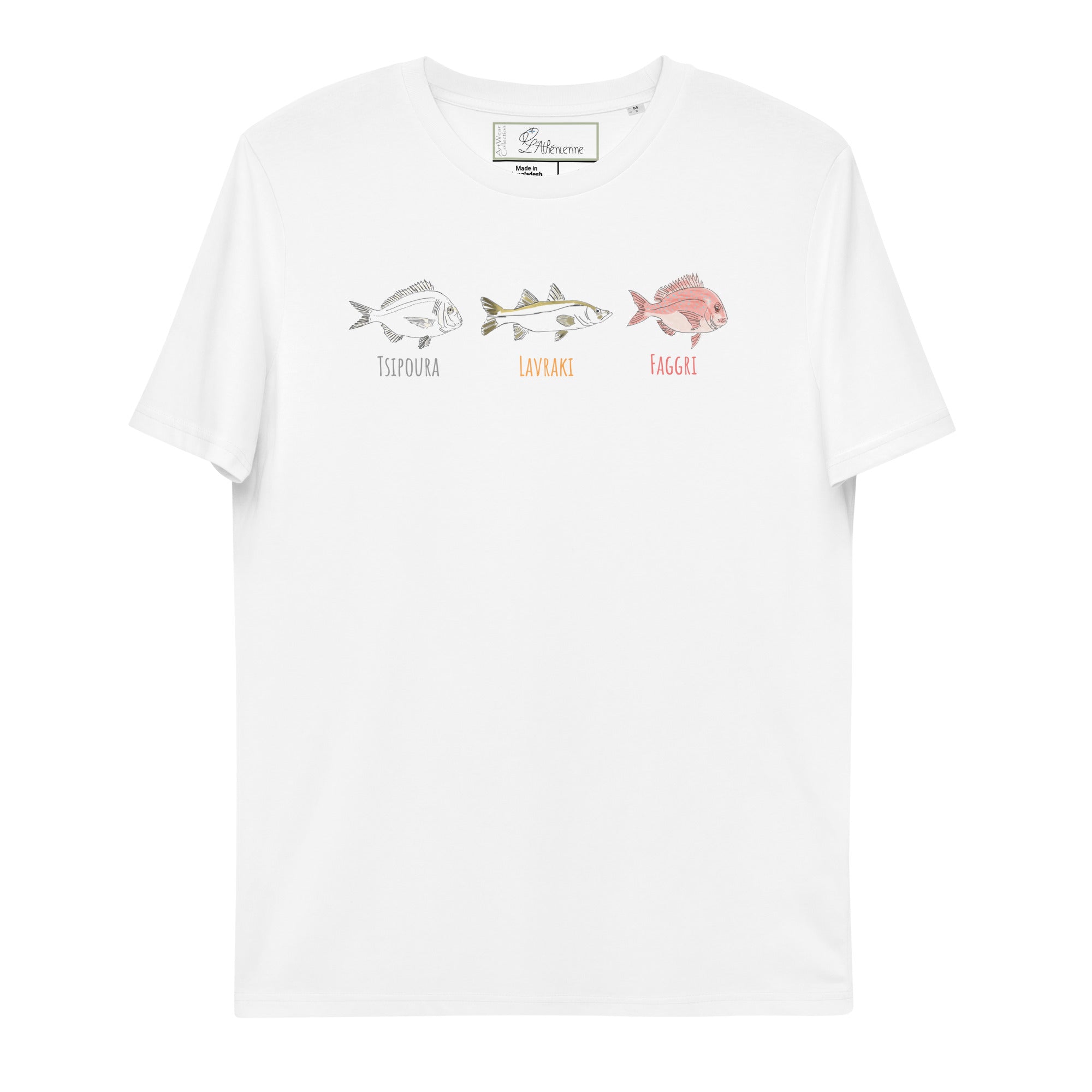 This Unisex organic cotton t-shirt is perfect for when you explore a Greek psarotaverna with friends. You'll feel confident that you don't miss out on the freshest catch, as the tastiest dishes are usually only served with the freshest ingredients. There's nothing like the joy of savoring delicious, freshly-caught red porgy, sea bream, or European sea bass. Crafted from 100% organic cotton, this t-shirt is of exceptional quality and provides extreme comfort. And don't forget—it's eco-friendly, too!